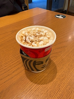 おはよあいかです 寒すぎて最近、 ズボン二枚重ねではいてます スタバのスモア飲んだよ います